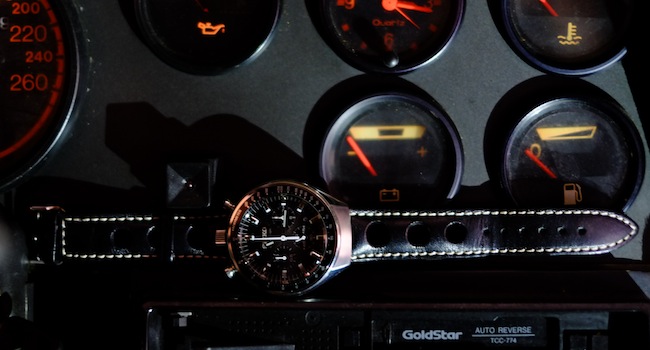 Apogée de la thématique « 24h du Mans, mitaines mi cuir mi crochet, blouson cintré en agneau plongé & voiture de sport vintage », le chronographe bracelet du tournant sixties-seventies, malgré la très riche (et souvent très quiche) iconographie qui l’entoure, n’est jamais qu’un chant du cygne.