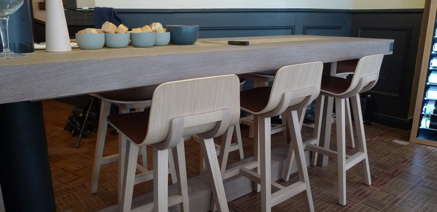 Petite terrasse et rez-de-chaussée affirment leur spécificité du sud-ouest sous la forme de tapas que l’on grignote entre amis, perchés sur des chaises hautes, dans une ambiance chaleureuse et colorée. Dans un coin, une camionnette écarlate distribue ses Taloas, sandwichs basques, enrobant des saveurs roulant gentiment leurs « r » : Poitrine de porc, fromage de brebis, pequillos, confit de canard, chorizo…