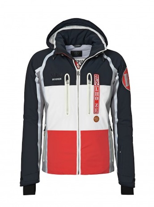 Regardez aussi ce que fait Bogner, la marque de l’allemand Willy Bogner, ex-champion de ski, un peu plus bling, la marque équipa Roger Moore pour James Bond « Rien que pour vos yeux ». Nostalgie des années 80 de par les couleurs… surtout si vous skiez avec une amie russe à Courchevel.