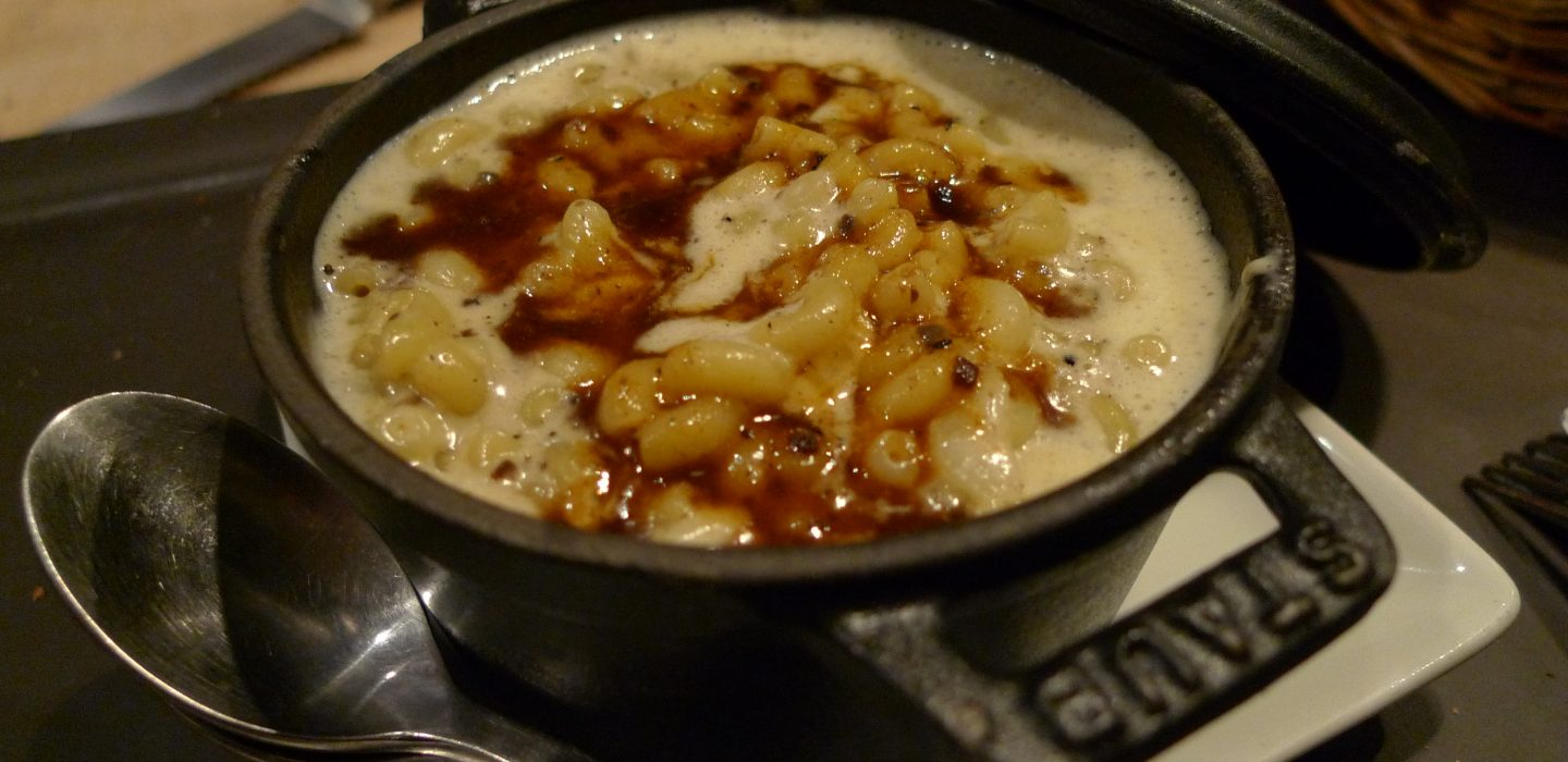 Cette rallonge c’est celle que le talentueux Geoffroy Maillard a tiré de sa Table d’Eugène (désormais une étoile au Michelin) pour la faire glisser doucement vers le haut de sa rue Eugène Sue (en termes consacrés, voilà donc une « annexe »). Cette rallonge, c’est aussi celle sur laquelle les amateurs de cuisine gouailleuse et de vins sympathiques viennent s’attabler tous les soirs dans une ambiance bruyante et désordonnée comme seuls les bistrots avec âme savent en créer. Ils y goûtent les plaisirs d’une cuisine de petits plats de saison, servis en portions modestes favorisant le partage, la découverte, et les arrosent de vins francs du collier tarifés avec bienveillance. Lorsque le temps fraîchit, le plat incontournable qui réconforte est le désormais célèbre « Risotto de coquillettes, cèpes et truffes » d’une onctuosité terrible. En cas d’éclaircie, un joli plat de « Chipirons à la plancha, riz d’une paëlla, parmesan et piquillos » sera votre rayon de soleil. Derrière le comptoir, le service a le sourire, ce qui est bien. Alors c’est là, au comptoir, qu’il faut réserver. C’est notre place préférée. Ce sera vite la vôtre.