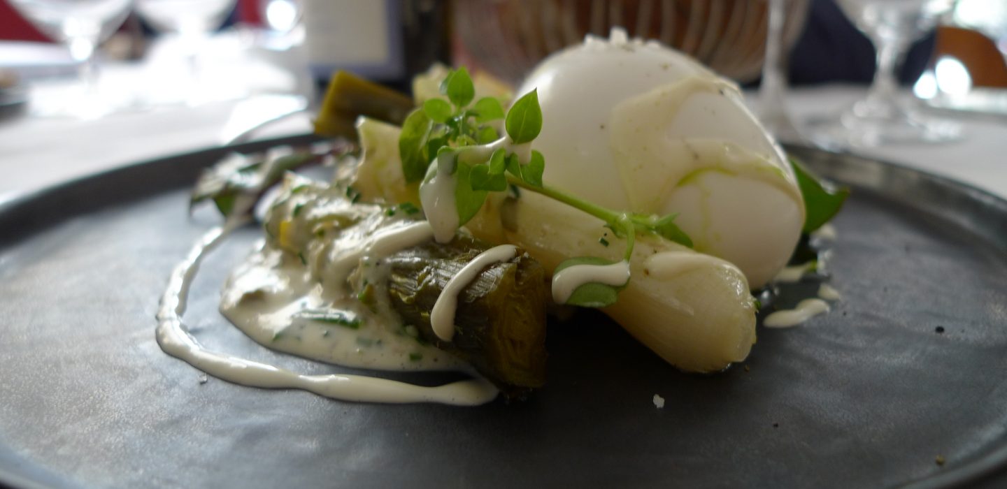 En cuisine on a confié les rênes à Mathieu Techer, ex-Senderens, appliqué et doué, donnant à quelques plats traditionnels (carte ultra courte) des lueurs contemporaines. Ses « Poireaux vinaigrette œuf mollet » rugissent de fraîcheur, son « Quasi de veau rôti, asperges vertes », cuit à la perfection, joue la saison croquante et son « Baba au rhum » cache sous sa vanille neigeuse un trésor d’ananas.