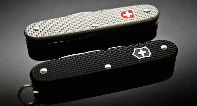 Inaltérable avec ses lames inox, indémodable et pourtant daté avec son manche en alu quadrillé, il est utile en toutes circonstances. La version officier suisse dispose d’une grande et d’une petite lame, d’un poinçon et d’un tournevis décapsuleur. Le cran forcé de la lame le limite cependant à de petits découpages.