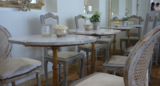 Veronika Squillante me raconte que le nom de Gelato del Marchese est inspiré du titre de son époux, marquis romain véritable, que la date d’ouverture de sa gelateria a été fixée sur la date d’anniversaire de ses jumeaux (le 13 décembre 2014) et que ses cornets ne se dégarnissent pas depuis… Cette Delphine Plisson de la Rive Gauche (Veronika est passée de la mode à la gourmandise soignée avec la même rage de challenger) offre aujourd’hui aux Parisiens ce qu’il leur manquait : una gelateria comme là-bas avec un service tablé sur l’art de vivre à la française. Ainsi on entre dans un take away-salon de thé très sofiacoppolesque, néo-baroque (tout est parti d’un canapé XVIIIe chiné aux Puces, situé au fond du salon). L’accueil est précieux, l’accent est italien et le café est servi dans de la porcelaine fine ancienne. Tutto va bene.