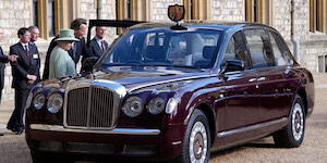A l’occasion du jubilé de 2002, Elizabeth II reçoit deux nouvelles voitures : deux exemplaires uniques, spécialement conçus pour la couronne, d’une limousine d’Etat moderne. Reprenant le châssis allongé d’un mètre de la Bentley Arnage, elle est équipée du V8 Rolls-Royce de 6, 75l turbocompressé et de l’Arnage R, développant plus de 400 chevaux. Peinte aux couleurs royales, elle en a tous les attributs habituels : blason, pavillon, feux de police et pas de plaque d’immatriculation. La mascotte de calandre est un lion, ou, lorsque la reine est à bord, une statuette de Saint-Georges. Cédant à la modernité, la voiture est également à l’épreuve des balles, avec un planché blindé antimines et une climatisation spéciale permettant, en cas d’attaque au gaz, de purifier l’air intérieur en circuit fermé. En janvier 2009, les deux Bentley State limousine ont été converties pour fonctionner au biocarburant, à la demande du prince Charles. Elles sont donc prêtes pour le prochain couronnement.