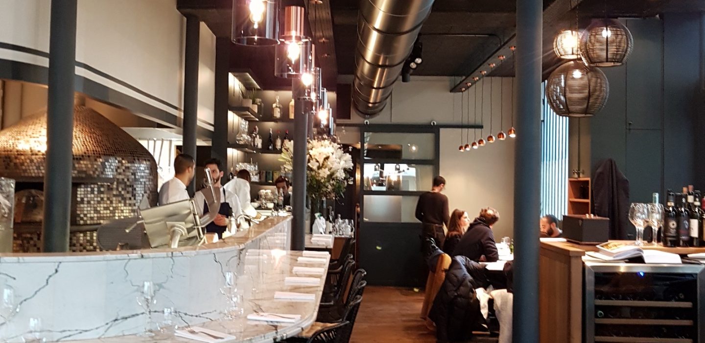 Dans un quartier où le bon goût s’est installé depuis quelques années (Quinsou est tout proche et la rue du Cherche-Midi n’en finit plus de dérouler ses terrasses jusqu’à Montparnasse), une trattoria vient de prendre le trottoir. Mais attention, une trattoria « Rive Gauche ». Entendez par là avec ce brin de chic désinvolte et contemporain qu’on croise dans les allées du Bon Marché. On y mange sur du marbre blanc, à l’abri de papiers peints géométriques de chez Pierre Frey inspirés de Gio Ponti, devant un four à pizza mosaïqué d’or balançant au visage du pizzaïolo napolitain ses flammes rougeoyantes. Même le savon liquide avec lequel on se lave les mains est siglé Officine Buly.
