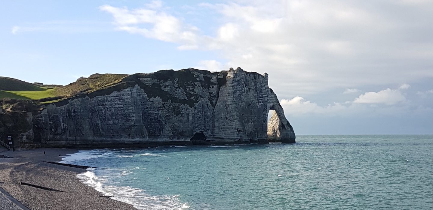 Une mer vers laquelle tout Etretat semble tourné. Les rues étroites y convergent en pente douce et il ne faut en aucun cas se priver d’une promenade sur la plage de galets, prélude tranquille à l’ascension des falaises surplombées par la Chapelle Notre-Dame de la Garde. C’est pourtant vers l’autre flanc que vos pas devront vous mener pour une excursion où l’air pur, le son du ressac et le blanc des aplombs de craie vous feront vite oublier les avenues parisiennes. Cette promenade en pleine nature ne se fera cependant pas dans la solitude la plus extrême, à moins de privilégier les premières heures du jour ou la saison hivernale (notre préférée). Et si le froid se fait trop insistant, ou si, tout simplement, vous souhaitez jouir de la vue estivale, allez donc boire un verre ou un thé au Dormy House qui jouit sur les hauteurs d’un très beau panorama.