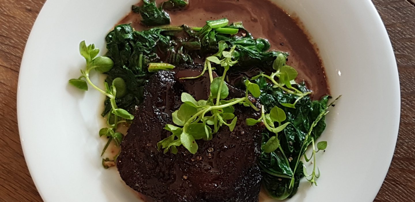 L’“Epaule d’agneau rôtie et purée de pommes de terre” tient toutes ses promesses de saveurs prononcées et de robustesse quand la “Joue de boeuf croustillante au vin rouge et épinards” se révèle le clou du spectacle. Cuite longuement dans du vin rouge, elle est ensuite rôtie au four, ce qui lui donne ce côté terriblement moelleux à l’intérieur et délicieusement croquant à l’extérieur. Un beau jus corsé et une tombée d’épinards complètent la fête.