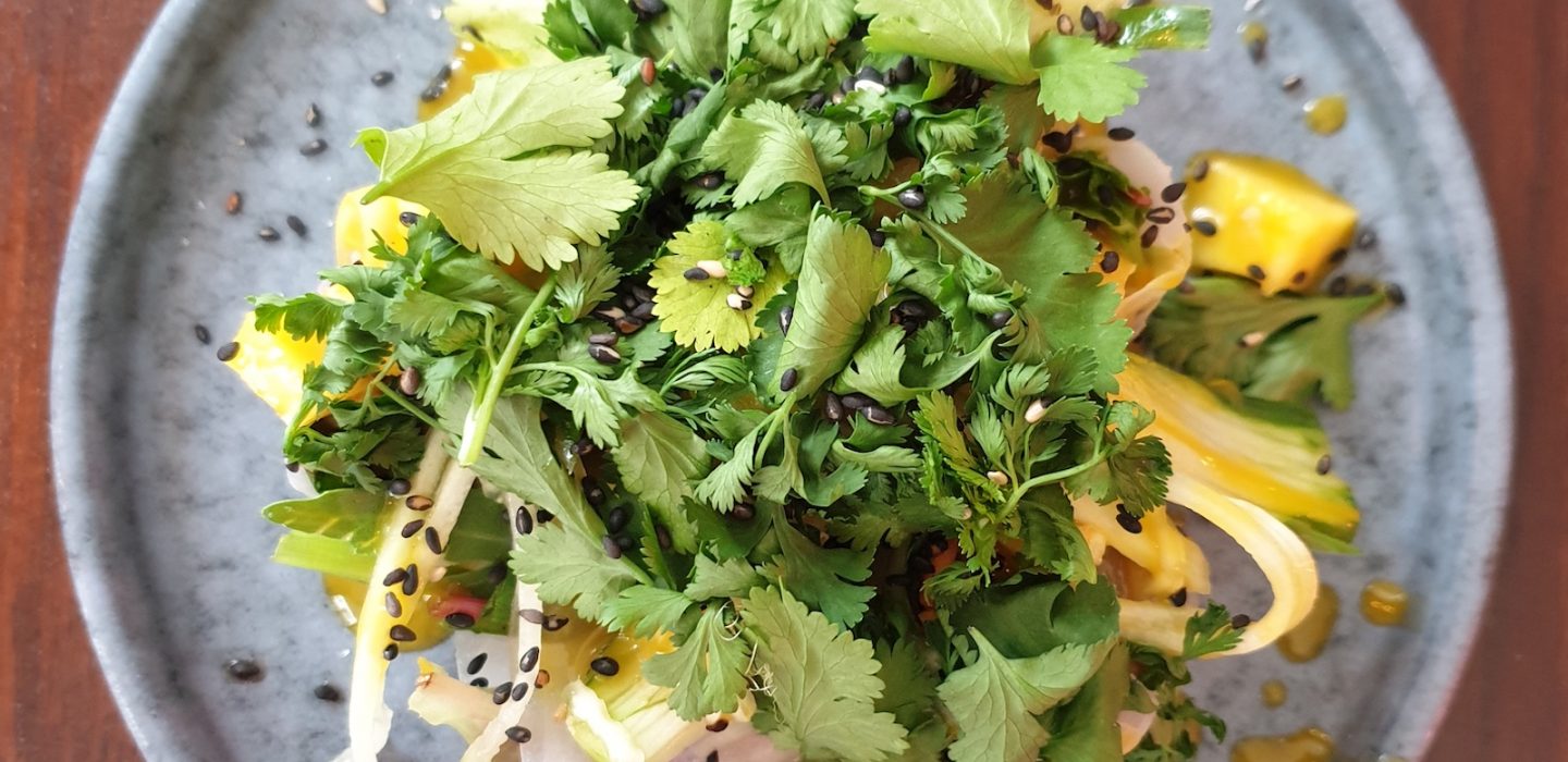 La carte secoue l’Asie du sud-est et bouscule les classiques avec une impertinence qui nous réjouit. Les rouleaux de printemps sont à la terrine de pied de porc, sauce spicy mango et recouverts d’une forêt d’herbes fraîches, le tartare est traité thaï avec herbes, câpres et kaow niew (riz gluant), le gaspacho se fait viet et le riz purple (riz au kimchi avec chou fleur, chou rouge, kimchi et oeuf).