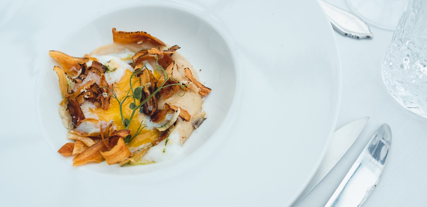 Dans la verrière flambant neuve, on passe à table. Malgré la météo maussade du jour, la pièce est baignée de lumière. Aux commandes de la cuisine : le chef Andy Bouglé, fraîchement arrivé au Château de Sacy, fait la part belle aux produits frais et de saison. Passé par le Grand Hôtel de Cala Rossa en Corse et les chalets privés de Courchevel (entre autres), le chef a débarqué en Champagne et offre un nouvel élan à l’adresse, avec sa cuisine à la fois précise et généreuse, réconfortante.