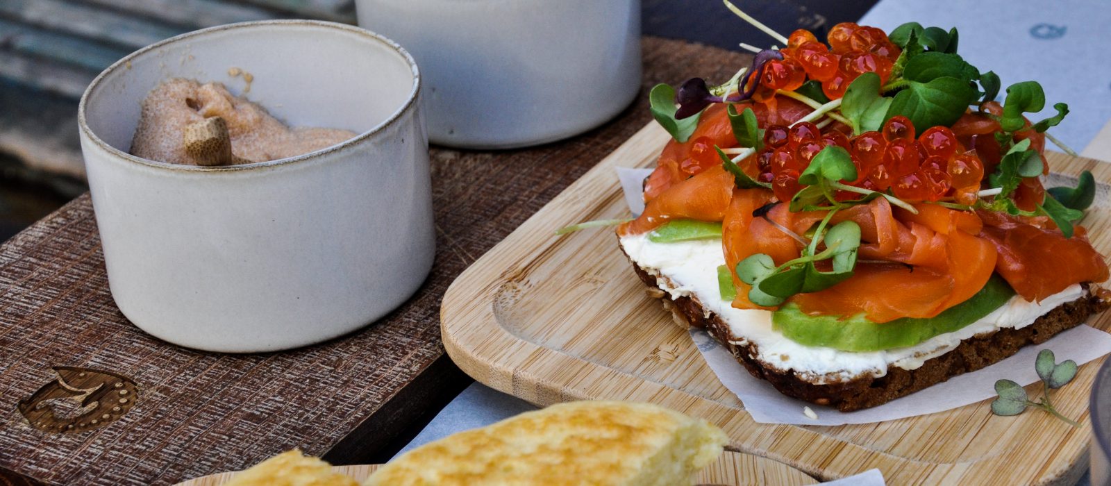 C’est bien simple, au diable la ligne estivale, bonjour feuilles mortes et réconfort : on a tout goûté. A commencer par de frais et délicieux Smorrebrod, ces petits pains noirs tout droit venus du Danemark , recouverts ici de fromage frais, mais parfois de beurre, et garnis de diverses merveilles. Pour nous, c’était un saumon fumé écossais surmonté d’oeufs de saumon et d’avocat. C’est frais, certes, mais c’est surtout généreux, loin de l’abhorré avocado toast californien.
