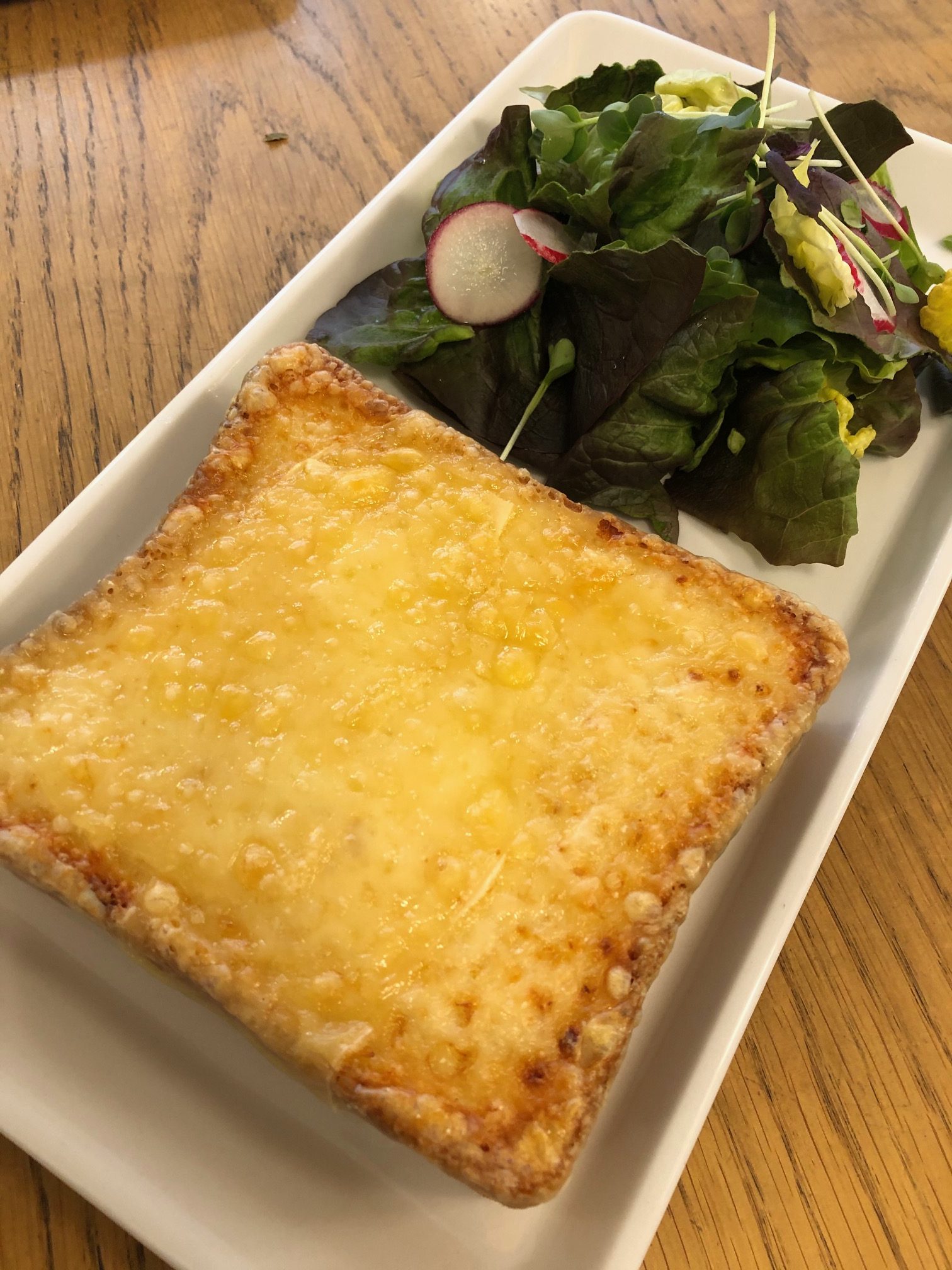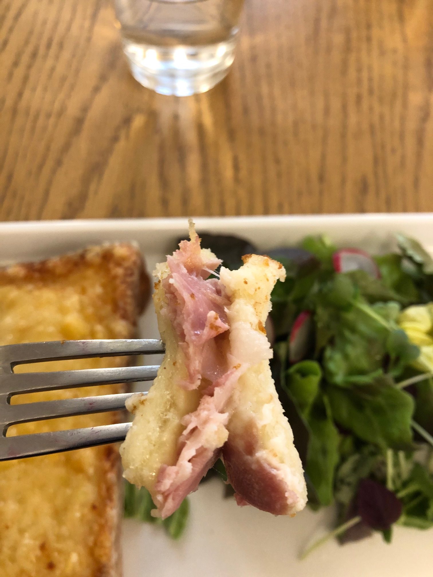 Son goût est doux et légèrement sucré, coupé en tranches épaisses pour bien le savourer, il est garni de Comté de 15 mois, de jambon blanc Prince de Paris et d’un soupçon de béchamel, ni trop, ni pas assez. Parfaitement équilibré, il a tout de l’authentique croque tel qu’on le mangeait à Paris il y a une vingtaine d’années. On trouve le même à Tokyo dans la maison mère. Au fait, il est possible d’acheter le succulent pain de mie à la boutique.