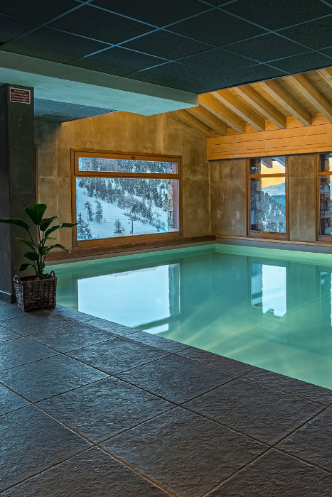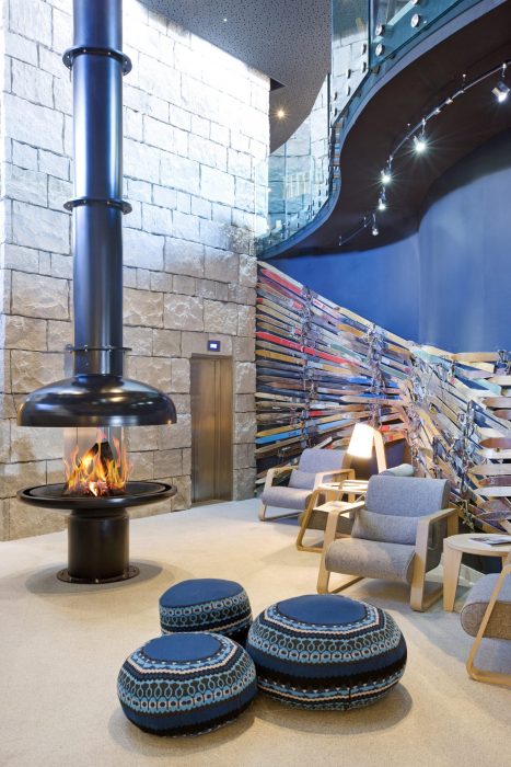 En plein cœur de la plus haute station d’Europe : Val Thorens, l’Altapura, un 5 étoiles, se veut « the highest skipalace ». Son allure de gros chalet dissimule une déco au look nordique piquée de trouvailles originales : plus de 200 skis « vintage » tapissent un mur à l’entrée, des plafonds à caissons en bois clair et lustres tarabiscotés surplombent les salons ornés de panneaux de bois clair en forme de flocon de neige… L’ambiance des 88 chambres dont 16 suites, d’une superficie de 28 à 60 m2 rappelle celle des chambres de skieur imaginées par Charlotte Perrian… Leurs baies vitrées permettent un coup d’œil sur les sommets. Quant à l’offre restauration elle nous plait bien ! Au 2 mille 3 (clin d’oeil à l’altitude de Val Thorens), place à de superbes buffets : rôtisserie, viandes à la plancha, fromages. A la Laiterie, entourés de grands pots à lait, on se régale de fondue, raclette et charcuterie, et, nouveauté de l’hiver 21/20, la Casa Alta, qui propose une carte italienne. En dehors du ski, les activités ne manquent pas : piscine intérieure/extérieure, spa Pure Altitude, avec 7 cabines, dont une double, un hammam, un sauna, un parcours ponctué de douches cascades et un igloo !