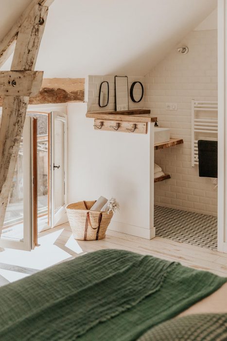 A l’intérieur, cinq chambres simples et apaisantes, aux murs de pierre blanche et aux belles tomettes rousses pour certaines, parquet clair pour d’autres. Mais si vous voulez être tranquilles, Les Hauts de Saint-Vincent proposent aussi un gîte indépendant pour deux, petite bâtisse elle aussi ancienne et restaurée sur deux niveaux par ses propriétaires, anciens parisiens lassés de la vie citadine et pressés de retrouver leurs racines. Le soir, on s’attable avec tous les convives autour de la table d’hôtes qui met à l’honneur les produits des amis du coin. Extra tip : l’endroit est privatisable et l’été, vous pouvez demander un vol en Montgolfière au-dessus de la vallée…