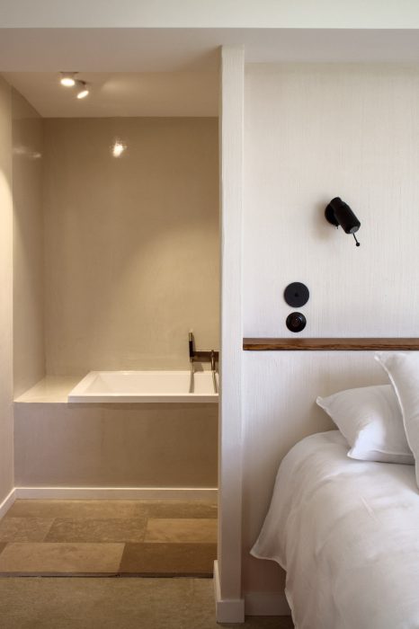 A l’intérieur de la bâtisse du XIVe siècle, préservée et améliorée jusqu’au XVIIe siècle, tout n’est que beaux tissus, boiseries aux couleurs pastel, plafonds à caissons, tapisseries réconfortantes, mobilier cossu dans les 18 chambres aux thématiques différentes. On se prendrait presque pour Raiponce, assise dans ce bow-window tout en pierre et surplombant la vue dans l’une des 3 suites (la bien nommée « Prison dorée »).