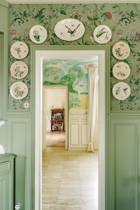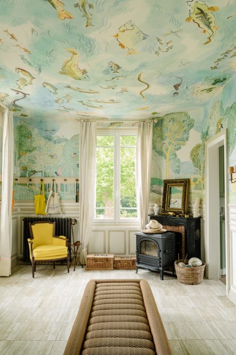Et les fresques ont décidément le vent en poupe. On pense notamment à celle de l’artiste Matthieu Cosse trônant sur les coursives de la nouvelle boutique Hermès de Sèvres Babylone à Paris, exercice auquel l’artiste s’est également prêté pour la coupole d’entrée de l’hôtel Le Coucou à Méribel, création montagnarde au sommet du chic signé Pierre Yovanovitch, ou encore pour la maison de campagne de l’architecte d’intérieur Tristan Auer.