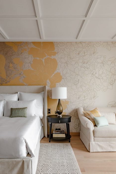 Souvenez-vous : le Royal Champagne, c’est cet établissement entièrement rénové et agrandi par un couple d’Américains amoureux de la région est posé sur un coteau, en plein cœur du vignoble, à l’emplacement d’un ancien relais de poste. C’est l’adresse idéale pour une visite des caves de Champagne. Les deux nouvelles ailes orientées vers Epernay qu’on aperçoit dans le lointain, sont dotées de larges baies vitrées pour offrir une vue panoramique. Familière de la Champagne (elle appartient à la famille Taittinger), la décoratrice Sybille de Margerie a conçu une atmosphère privilégiant la clarté et la luminosité : bois blonds, tissus légers, mobilier aux lignes épurées. Tout est fait pour que les hôtes apprécient l’esprit apaisant des lieux.