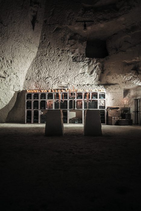On commence la visite des caves incontournables de Champagne par la Maison Ruinart. Elle a été la première à entreposer ses bouteilles de champagne dans les crayères de la butte Saint-Nicaise au 18ème siècle. Une initiative due à Claude Ruinart, le fils du fondateur de la Maison. Depuis, celles-ci ont été aménagées sur trois niveaux, et renferment plusieurs milliers de bouteilles. On accède d’abord à une salle à 8 mètres de profondeur qui accueille quelques-unes des étapes clés de l’élaboration du champagne. Puis l’on s’enfonce plus avant dans un véritable labyrinthe, de huit kilomètres de long. Et l’on atteint enfin les crayères à la blancheur immaculée, dont certaines atteignent des dimensions de cathédrales souterraines.