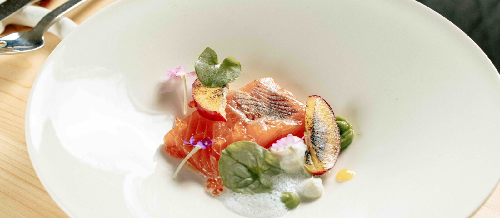 Chez Inima, rien n’est laissé au hasard. La salle du restaurant, volontairement sobre, offre un décor intime qui ne distrait pas l’œil de ce qui arrive sur la table. Chaque plat semble pensé comme une composition d’art plastique, où couleurs et textures dialoguent avec une subtilité étudiée. Mais derrière l’apparence presque picturale, Oxana Cretu recherche la justesse des goûts. Elle aime jouer avec les contrastes : l’acidité d’un ponzu mandarine pour réveiller une Saint-Jacques, la verdeur saline de la salicorne pour souligner la tendreté d’une seiche, le parfum discret du sureau venant nuancer la profondeur d’un merlu maturé. Sa cuisine, très contemporaine dans l’esprit, conserve toujours une part de mémoire intime : des évocations de son enfance moldave surgissent dans l’emploi d’herbes, de fleurs, d’infusions végétales, ou encore dans l’utilisation d’ingrédients comme l’aronia, fruit encore méconnu en France. Ce mélange de rigueur technique et de poésie personnelle compose une écriture culinaire immédiatement identifiable.