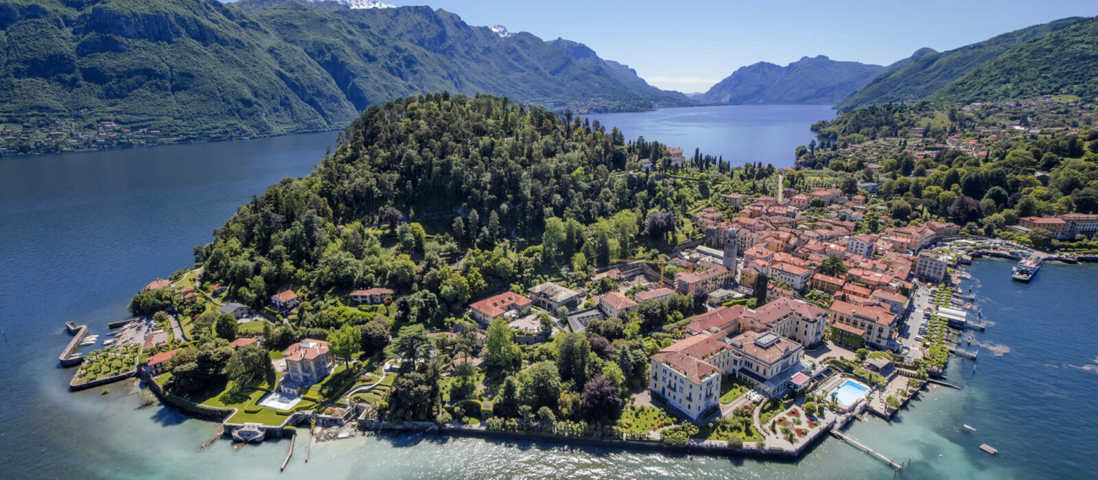 C’est l’adresse iconique de Bellagio, ce village à la situation géographique privilégiée où se rejoignent les eaux des deux branches du lac. Figurant parmi les plus beaux villages d’Italie, il est surnommé « la perle du lac » avec son décor que cisèlent les montagnes : une carte postale vivante, entre très belles demeures et ruelles pavées historiques garnies de petites boutiques. De ses terrasses bordant le port, on admire le va-et-vient des bateaux maillant le lac et passant d’une rive à l’autre.