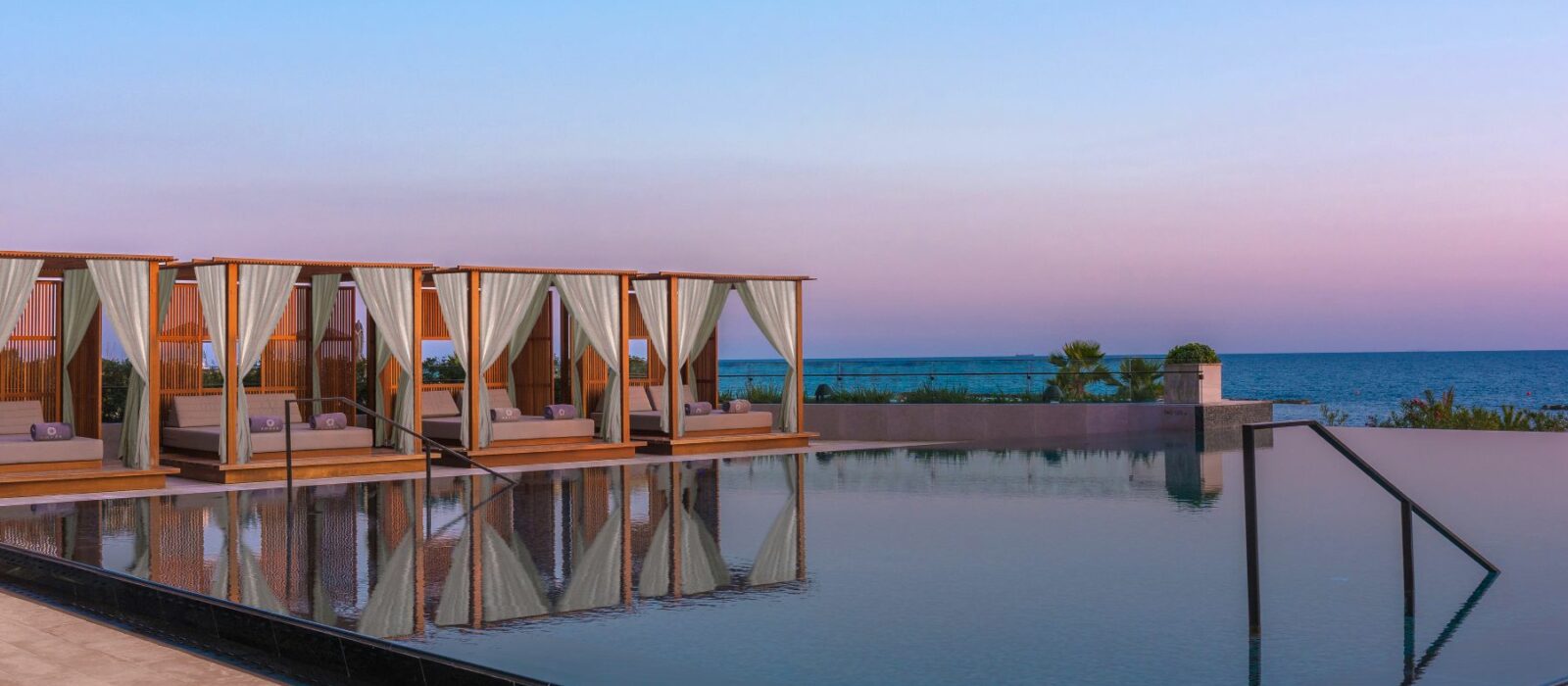 Son architecture, façon “palace” se retrouve à travers son jardin paysager, ses grandes colonnades, ses mosaïques et jeux d’eau. Le travail de la pierre, du marbre et du bois rappelle l’art et l’artisanat de l’île, faisant écho au patrimoine chypriote. Piscines en étage, petit amphithéâtre et crique de sable confidentielle complètent le décor de cet établissement ancré au cœur d’un site millénaire. Le lieu porte aussi une démarche environnementale et sociale tangible : formations internes, réduction de l’empreinte écologique, et collaborations avec artisans et producteurs locaux.