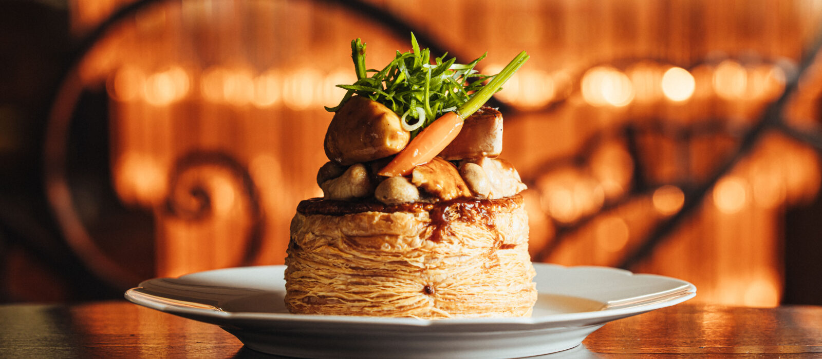 A Issy-les-Moulineaux ! Le Domaine de la reine Margot de la collection M Gallery, s’abrite dans une ancienne bâtisse du XVIIe siècle. Au restaurant Marguerite 1606, le chef Jean-Philippe Perol décline les bouchées Marguerite en trois versions : Ris de veau, jambon blanc au torchon, champignons, sauce suprême, 39 €, Homard et écrevisses, betteraves, épinards et bisque crémeuse 39 €, et sa recette végétarienne Végétale, légumes d’hiver rôtis, fricassée de champignons 29 €.