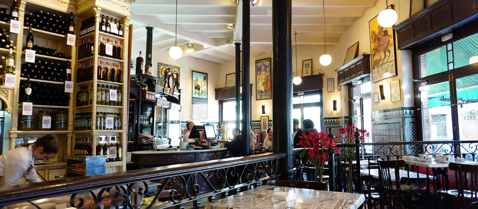 C’est là, en plein cœur de la Plaza Nueva, que le contrat de construction du Musée Guggenheim a été signé avec Frank Gehry. A la fois bar, restaurant et traiteur, cette brasserie carrelée à la façade spectaculaire a été fondée en 1849. C’était un magasin d’alimentation réputé pour ses produits. Dans des présentations toujours très achevées, ses pintxos assemblent tradition et sophistication, produits de la mer et du potager. On savoure au bar, soutenu par des petits tonneaux, poivrons, fromages, anchois de Cantabrique, jambons Bellota Extremadura Grand Cru. Un saumon est à la truffe et à la poudre d’or ; des filets d’anchois en papillon sont accompagnés de caviar d’Arbequina, une huile d’olive sous forme de perles dorées. À l’étage, une salle aux tables nappées est entourée d’une incroyable collection de whiskys, brandys et cognacs conservés précieusement depuis 1846.